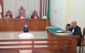 Bandar Lampung (Sekilas Lampung) – Terdakwa Rustam Efendy (36), warga Kelurahan Rajabasa Jaya, Bandar Lampung, menjalani sidang perdana dalam kasus pembunuhan terhadap ayah kandungnya sendiri di Pengadilan Negeri Tanjungkarang, Bandar Lampung.