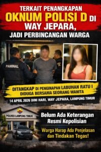 Terkait adanya penangkapan seorang pria yang diduga oknum anggota kepolisian berinisial D di wilayah Way Jepara, peristiwa ini menjadi perhatian dan perbincangan masyarakat.